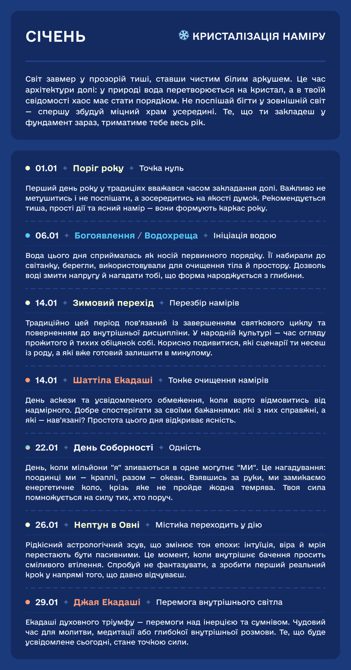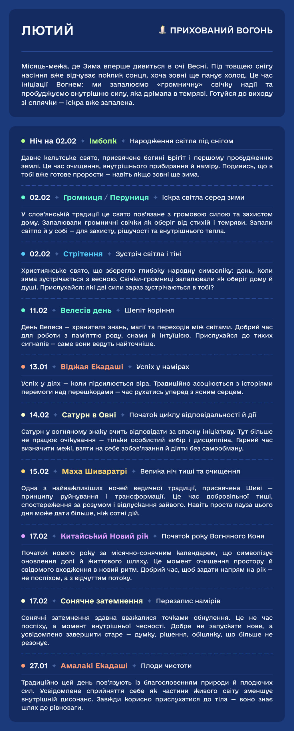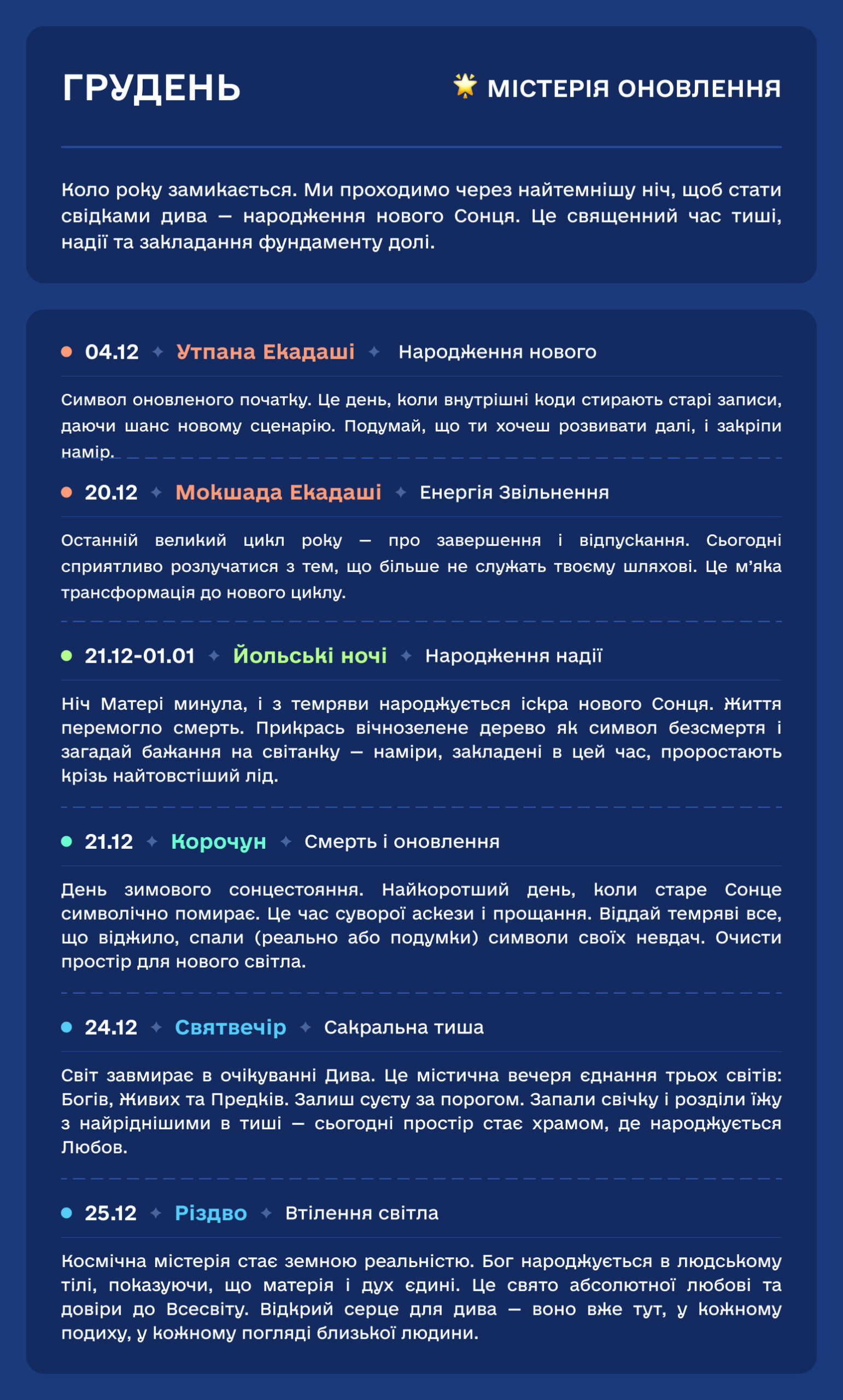 Ми створили цей простір, щоб дати вам ключі від прихованих дверей року. Це не сухий довідник, а спроба підсвітити невидиме. Ми хочемо, щоб за звичними назвами свят ви побачили дещо більше — живу, пульсуючу тканину часу.