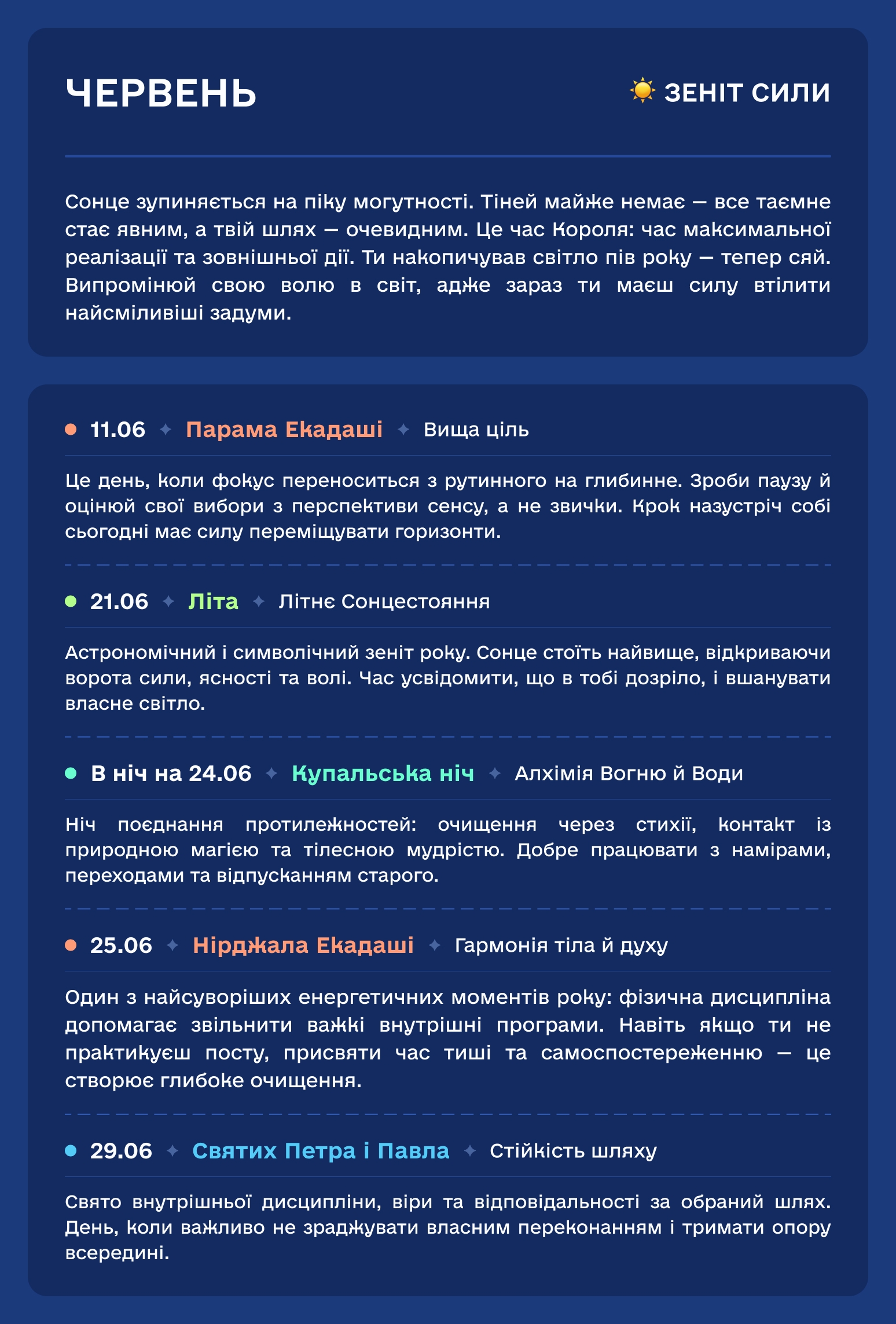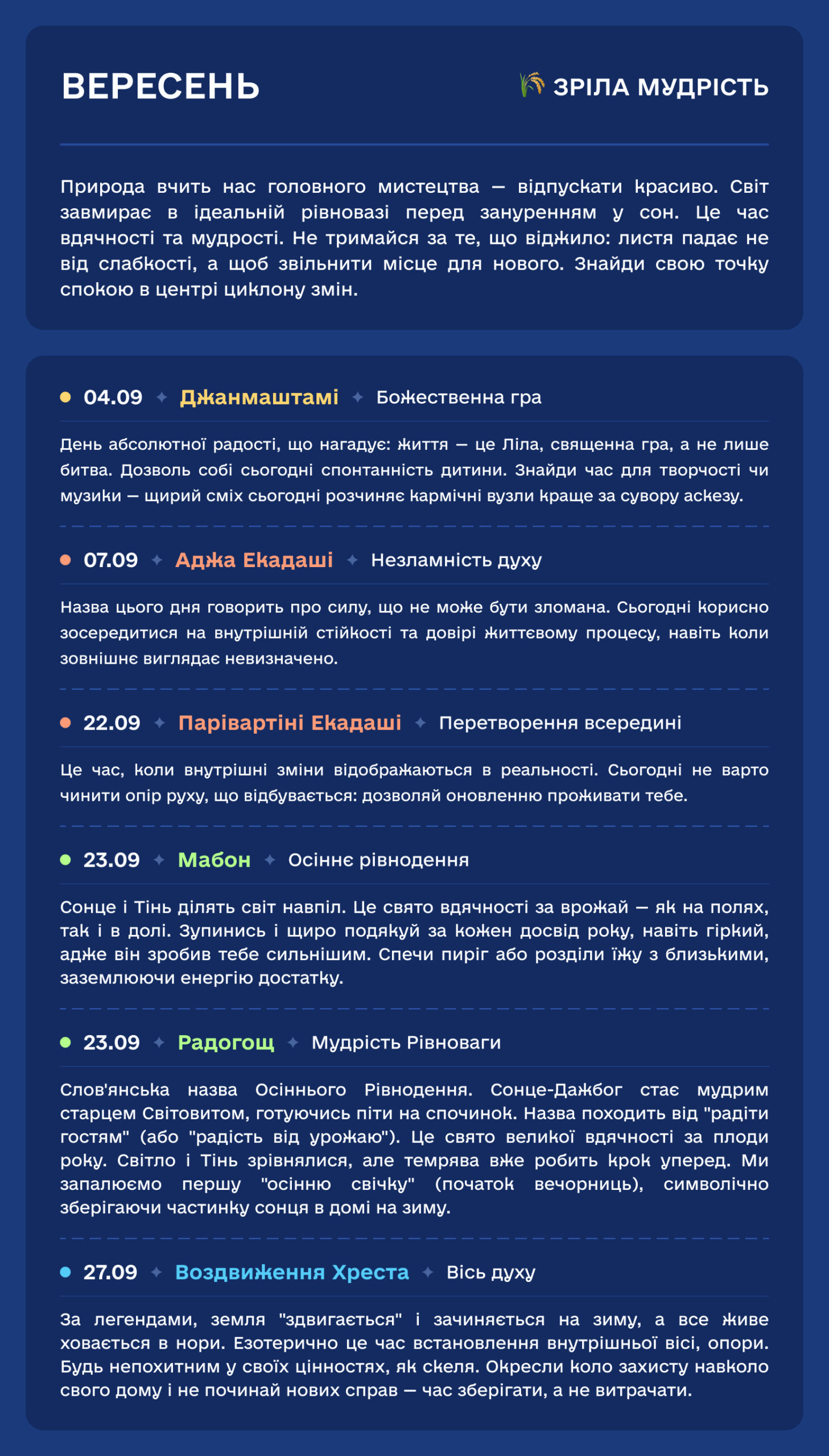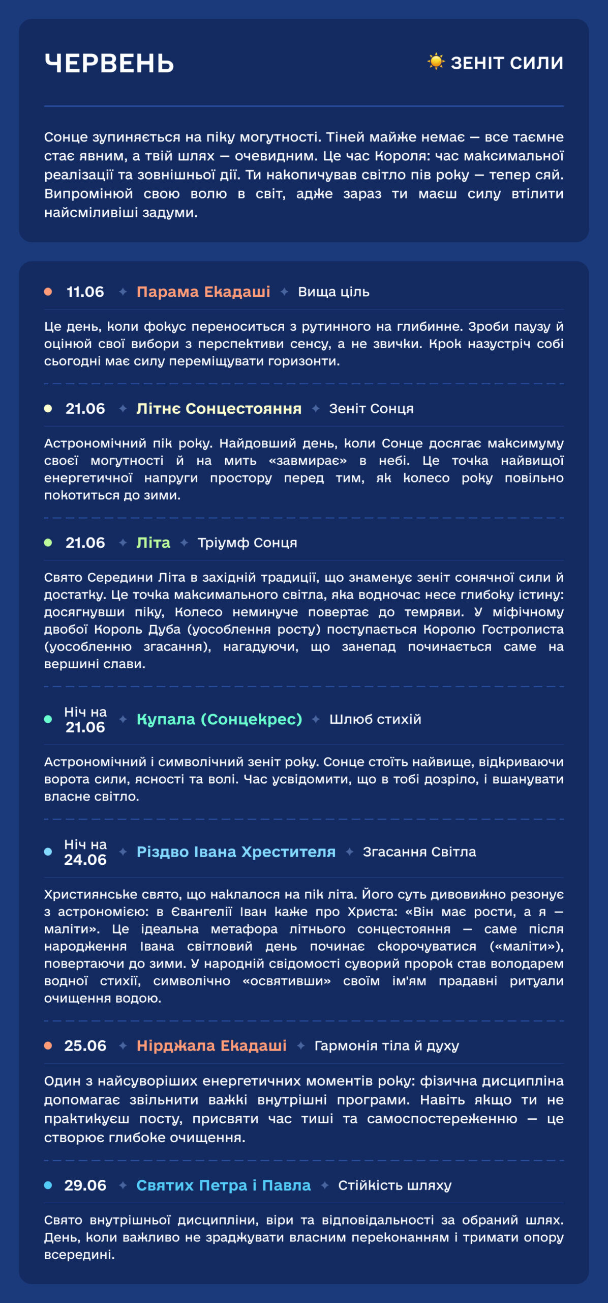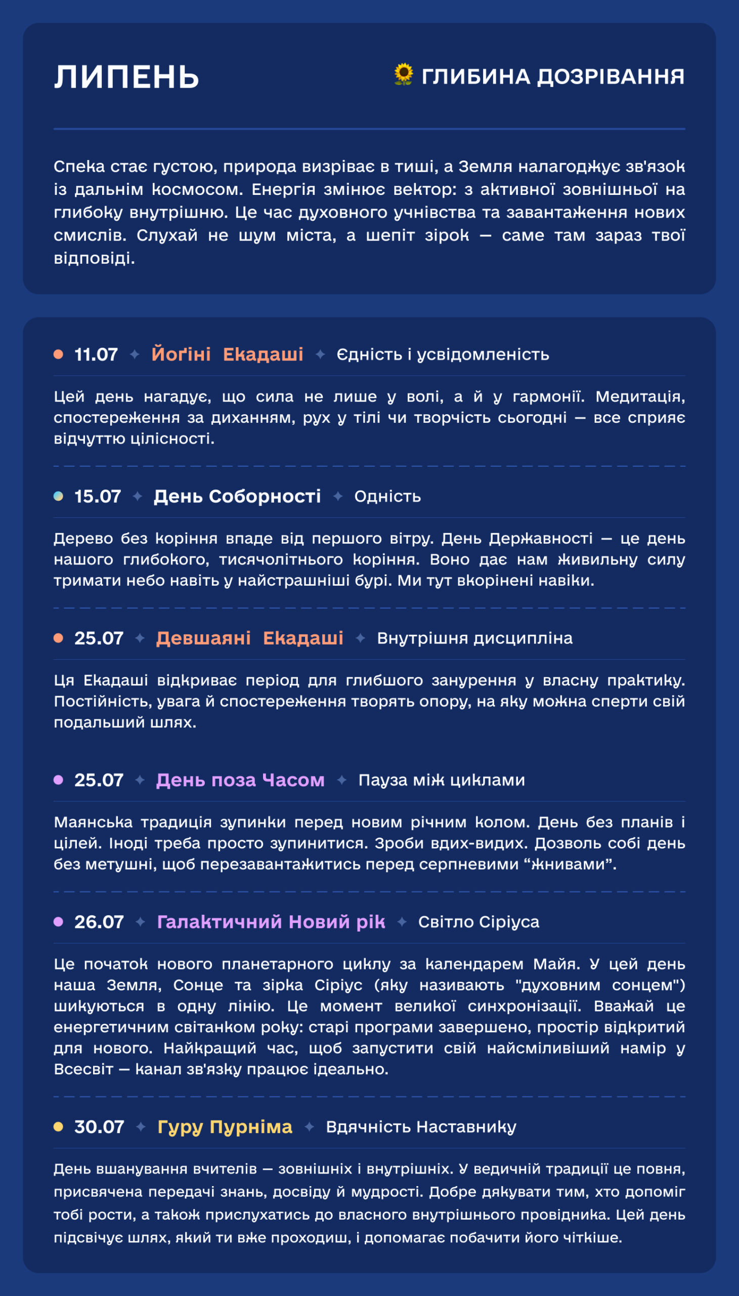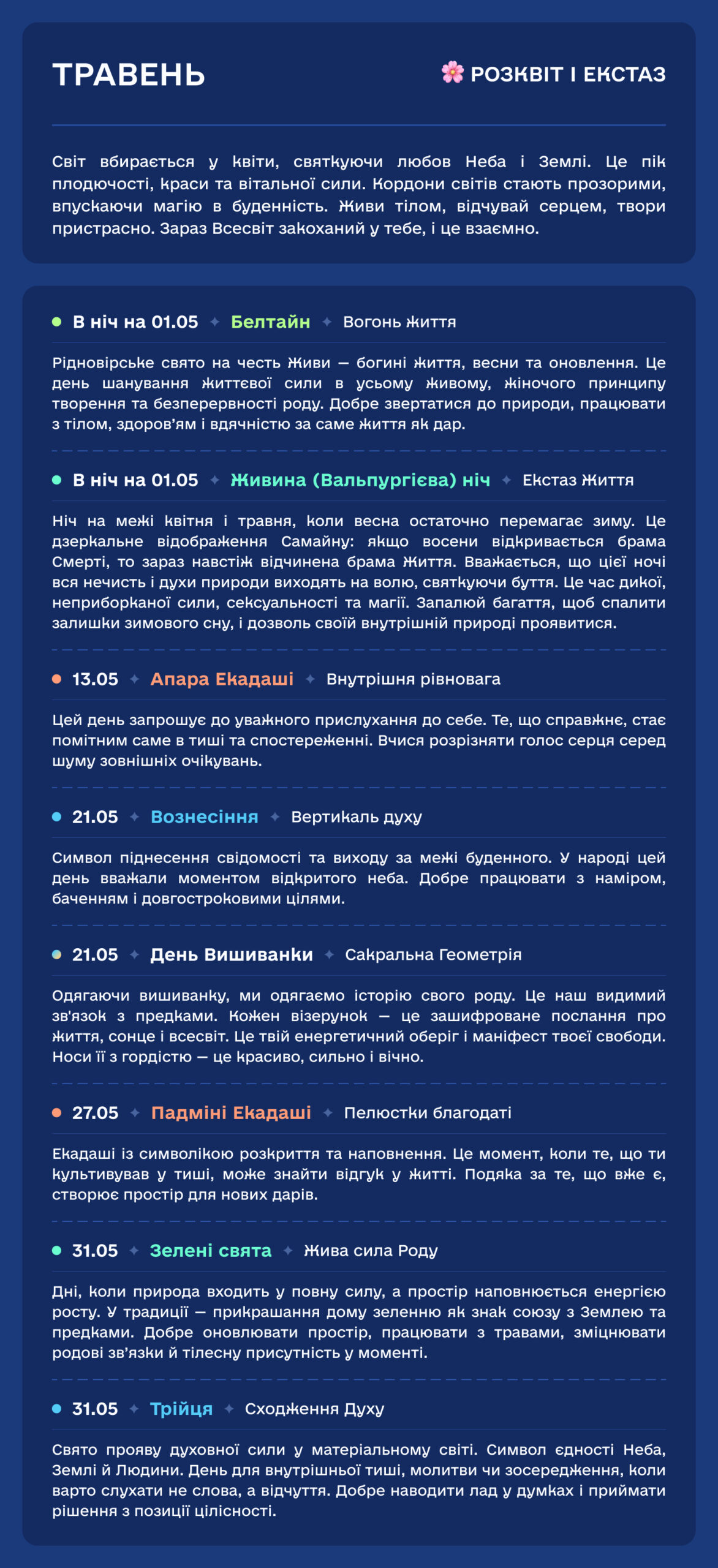 У цьому календарі ми відновлюємо справедливість. Ми повертаємо свята на їхні законні, енергетично сильні місця. Тому, коли ви святкуєте за цим календарем, ви резонуєте не з “цифрою в паспорті”, а з реальною вібрацією Землі.