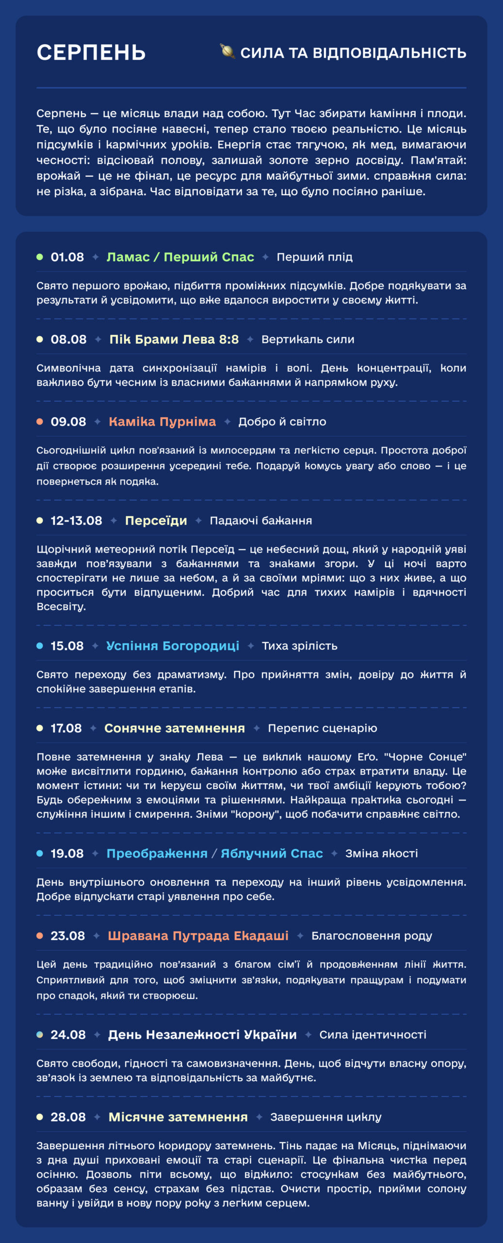 Цей текст допоможе вам не просто знати «коли», а розуміти «чому». Чому саме сьогодні варто запалити вогонь? Чому завтра краще мовчати?
